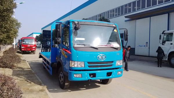解放叉車(chē)運(yùn)輸車(chē)主要是在解放平板運(yùn)輸車(chē)的基礎(chǔ)上對(duì)尾部爬梯部分經(jīng)過(guò)了改裝,加寬及加長(zhǎng)了爬梯部分,使3噸左右的小型叉車(chē)也可以輕松通過(guò)這輛解放叉車(chē)運(yùn)輸車(chē)來(lái)運(yùn)輸。