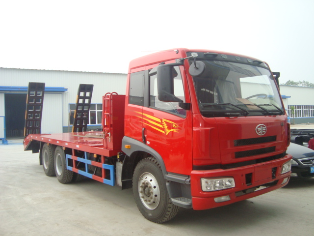解放后雙橋平板運輸車作為可拖200型以上挖掘機類型的平板運輸車,自設計上市之初就是一款熱銷車型,前期我廠生產的解放后雙橋平板運輸車多采用錫柴240馬力發動機,解放J5M平板駕駛室,8檔變速箱,10.00R20,現在,我廠對這款熱銷解放后雙橋平板運輸車進行了升級,升級后的配置為:配解放錫柴260馬力發動機,解放J5M半高頂駕駛室,一汽10檔變速箱,10.00R20鋼絲胎。