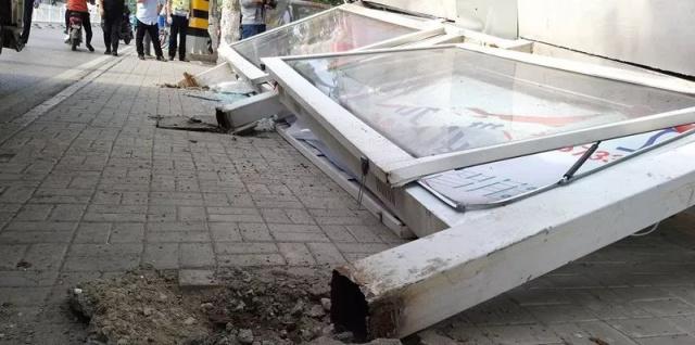 洗掃車司機說:“我每天都開車沿魏武大道東側的非機動車道清掃,但今天下午3點鐘左右,因為躲避一輛三輪車,無意間撞倒了站臺上的棚頂,而且旁邊停放的這輛黑色私家車也被砸壞。”