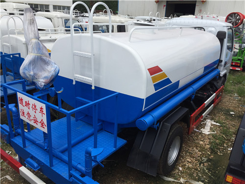 罐體容積5立方米,該車具有免征公告(可免交車輛購置稅)。采用武鋼4mm優質碳鋼板一次卷壓成型,完全做到無縫成型。罐體內設多道防波隔板,采用高壓氣體試漏檢測,使罐體具有強度高,重心穩,車輛運載安全平穩。罐體外表為烤漆,罐體及各保險杠貼紅白色視覺反光條,罐體兩側噴“綠化灑水車”字樣