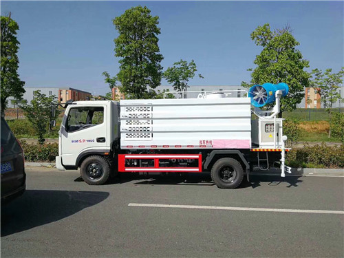 打藥抑塵車產品推薦:東風(福瑞卡)噴藥車――罐體可裝4噸水,該車工作效率高、噴霧速度快、可邊行駛邊噴