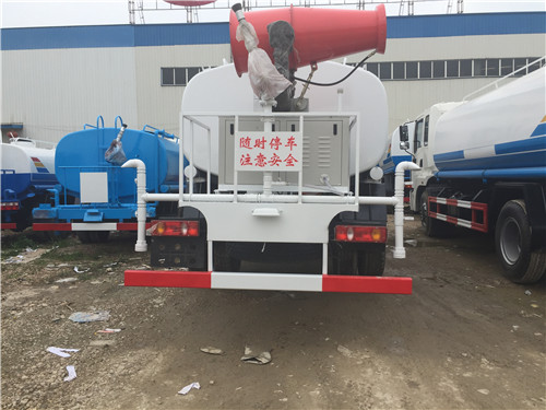 灑水車標配的4項噴灑頭:三彎前沖、后灑、鴨嘴側噴、高壓水炮,每一個噴頭均帶獨立的管道球閥以控制噴頭的開啟與關閉。灑水噴頭開的越多,水流量越大,水的壓力就被分散,道路沖洗效果就會相應降低,這也是有些環衛灑水車只采用一個前沖頭進行道路灑水的原因。但這對于綠化灑水車來說這是一件好事,植物澆水本不需要太大的壓力,多裝個噴頭就能緩解水流沖擊力過大的問題,還能增加澆水量,可謂一舉兩得。所以綠化灑水車高位花灑位置一般是2個噴頭,常有客戶會要求裝到3-4個噴頭,就是這個道理。