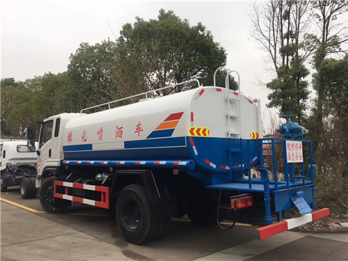 1、新款東風專底D1灑水車標配前沖、后灑、側噴、后工作平臺、綠化炮、自流閥、消防接口、水位計各1個,輸水管3米2根,罐體右后上方帶花灑2個。