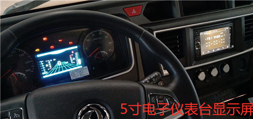 這新款東風專底D1灑水車儀表臺顯示屏,是一個5寸的顯示屏,這個和上面介紹的多功能媒體內似,能顯示新款東風專底D1灑水車車輛狀況,能明確顯示新款東風專底D1灑水車任何故障,及時提醒等,會更具各大故障顯示不同形狀和亮光不同來提示灑水車車主還及時處理。