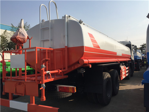 20方東風后雙橋灑水車,東風153寬體駕駛室,4350+1300mm軸距,國三康機ISB210發動機,八變速箱,前橋5.0T/后橋10.0T,車架250 (7+4)mm,10.00-20尼龍胎。配置60/90水泵,前沖后灑,帶后工作平臺,帶高炮,右位花灑,帶側噴。整車型號:DLQ5250TGYL5,,底盤型號:EQ1250GLJ,平頭一排半御龍駕駛室、康明斯ISB210 50發動機、小八檔變速箱、280×80×(7+4)mm大梁、5噸前橋、10噸雙后橋,軸距4350+1300mm、輪胎11.00輪胎 ,罐體容積24立方,6mm厚,單倉帶泵、含工具箱、含兩個自流出口,水壓封頭加1000元,選裝配置(另加價):一個海底閥加1000元,一個歐標罐口加1000元