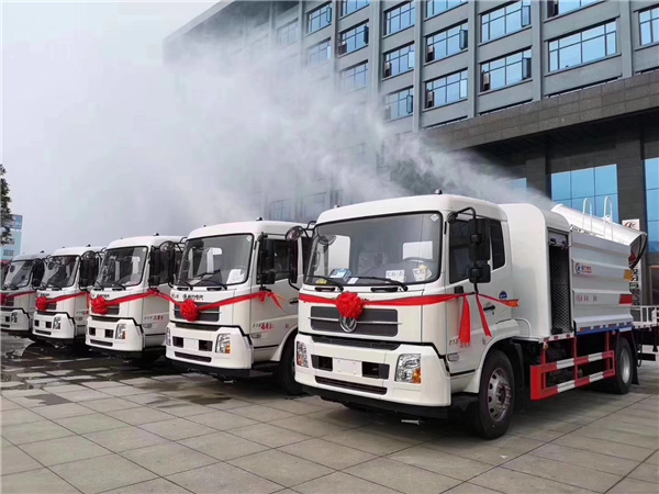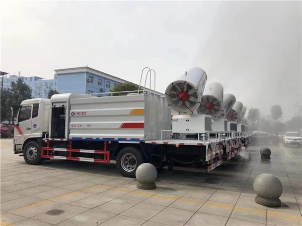 一種就是城市里面使用的抑塵車,抑塵車又稱為:霧炮車、噴藥車。霧炮車噴射的水霧顆粒達到微米級,能有效分解空氣中的污染顆粒物、塵埃等,在霧霾天氣下用于降塵除霧,可以有效的緩解霧霾,其節水的特性同樣也可以用作灑水車使用。霧炮車還可以降塵、灑水,把樹上的灰塵洗掉。霧炮車噴灑出的水霧與懸浮在空氣中的PM2.5和PM10粉塵顆粒吸附、聚合、沉降,達到消除污染物和減霾的目的。盡管霧炮口徑巨大,但其噴灑耗水量僅為傳統灑水車的兩到三成,覆蓋面積和除塵效率卻高出20倍。既提高效率,也避免路面積水影響交通。