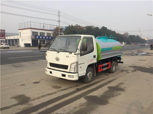 整車DLQ5040GSSCA5型灑水車,藍牌,底盤型號為CA1040K3LE5,霸鈴1690寬單排前翻駕駛室。錫柴80馬力發動機,五檔變速箱,600-15輪胎(雙后胎)。全鉚接大梁,動力轉向。電熄火,24V電瓶。ABS,油剎,軸距2400,間隙自調,大燈可調,電調收音機+MP3。