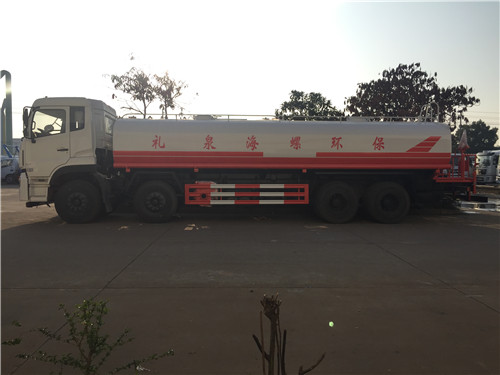 前四后八大型灑水車又稱為噴灑車、多功能灑水車、園林綠化灑水車、水罐車、運水車。灑水車適合于各種路面沖洗,樹木、綠化帶、草坪綠化,道路、廠礦企業施工建設,高空建筑沖洗。具有灑水、壓塵、高、低位噴灑,農藥噴灑、護欄沖洗等功能,還具有運水、排水,應急消防等功能。
