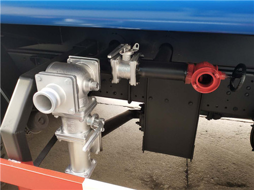 灑水車在應急消防時,其操作程序是:調節三通球閥 G 到如圖位置(注意:三通球閥凹坑所對方向關閉),關閉不銹鋼球閥 A、B、C、D、E 和鋁合金球閥 H,打開消防栓 I 和不銹鋼球閥 F,踏下離合,打開取力器開關,慢慢松開離合(千萬不可過快,否則將會損壞取力器或變速箱),使水泵開始工作,即可通過灑水炮和消防栓出口應急消防,停止工作后開關回位。