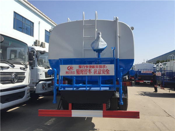 灑水車前裝有鴨嘴型噴霧或圓頭沖嘴,后面裝有圓柱形灑水砣,側噴花灑蓮花頭,車后部裝有高射噴槍。(選裝)
