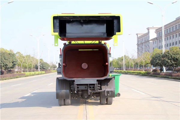餐廚垃圾車:餐廚垃圾箱有方形和船形,方形用于地坑式,船形置于地面,其特點(diǎn)是餐廚垃圾箱能與車體分開,實(shí)現(xiàn)一車與多個(gè)餐廚垃圾箱的聯(lián)合使用,循環(huán)運(yùn)輸。掛桶餐廚自卸垃圾車:采用鏈條和液壓油缸聯(lián)動裝置,實(shí)現(xiàn)對餐廚垃圾半提升和翻轉(zhuǎn),將多處餐廚垃圾斗內(nèi)的垃圾自動收入車廂,并可一次自卸。一個(gè)車多桶,循環(huán)運(yùn)輸。具有整體結(jié)構(gòu)設(shè)計(jì)合理緊湊;裝卸餐廚垃圾自動化;使用效率高,廂體采用輕量化設(shè)計(jì)、運(yùn)載量大、封閉性能好;安全、節(jié)能、環(huán)保等優(yōu)點(diǎn)明顯。