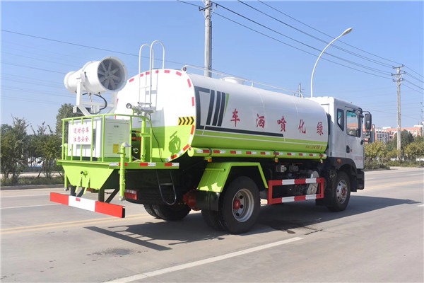 1、高壓水炮――位于東風(fēng)D9國六14.5方噴霧車后工作平臺(tái)上,可360度全方位旋轉(zhuǎn),可連續(xù)調(diào)節(jié)成:柱狀、開花狀、大雨、中雨、毛毛雨、半霧狀等水流形態(tài),射程28米,可用于遠(yuǎn)離沖洗建筑物、樹木、應(yīng)急消防救火、重污染路面的定點(diǎn)清洗等。