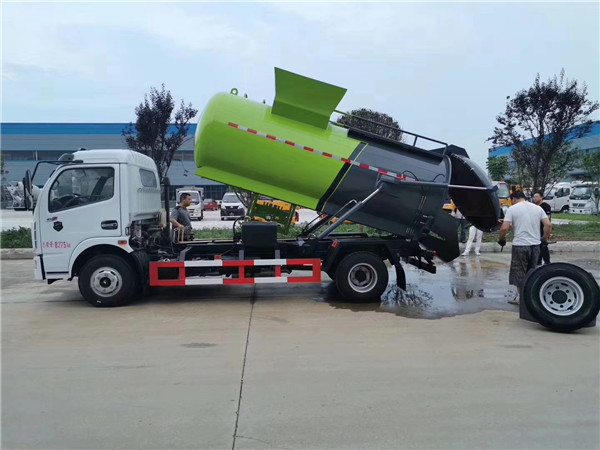 主要就是能拉更多了。因為環衛餐廚垃圾車的結構和自卸車不同,所以同樣的車型能勾舉的重量要低于自卸車。這時候伸縮臂通過縮短力矩,來提高了勾舉噸位。同時液壓后支腿的支撐保證了勾舉載重時車輛的安全。這樣以來就顯著的提高了可裝載垃圾量。尤其是部分新小區內裝修,建筑垃圾較多,重量較重,傳統的小型輕型餐廚垃圾車幾乎沒法清運,這時候帶伸縮臂及后支腿的小多利卡餐廚垃圾車就能滿足使用要求了。