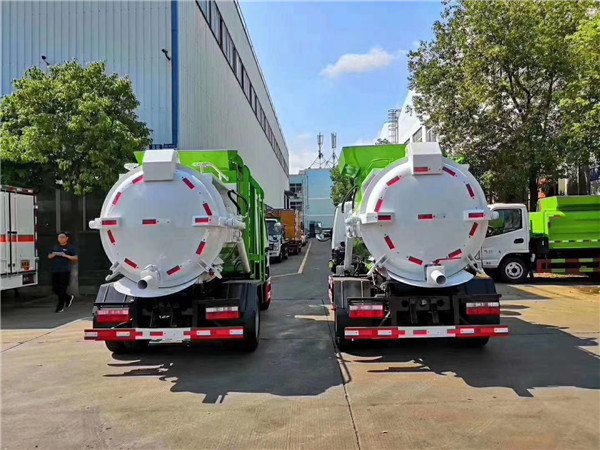 帶干濕分離,及推板,連桿式提升機構,可掛120L或240L垃圾桶,后門液壓開啟,確保不滲漏