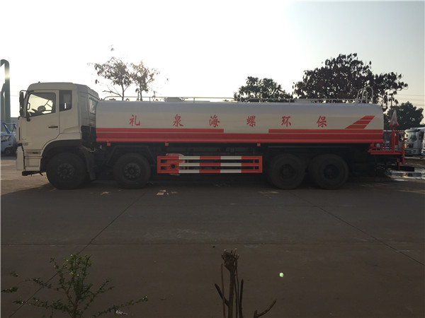 上裝配置:罐體實際容積約為20方,采用優(yōu)質碳鋼板制作,帶前沖后灑,帶后操作平臺,平臺安裝綠化灑水高炮,罐頂副駕駛一側,后封頭上方帶高位花灑,配億豐灑水泵泵可自吸自排,帶消防栓接口。其他附件按廠標配齊。