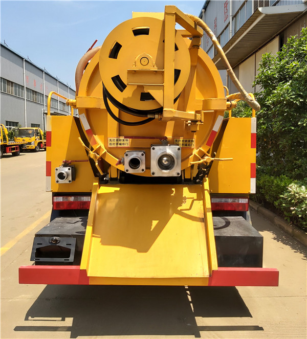 3、專用部分結構基本相同:由取力器、傳動軸、真空吸污泵、高壓成型罐體、水氣分離器、油氣分離、多路換向閥、吊桿、放糞閥、吸糞槍,管網系統組成,并裝有真空壓力表、視污窗(管),洗手裝置。