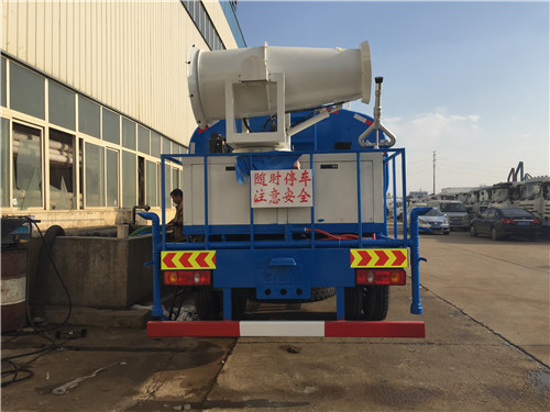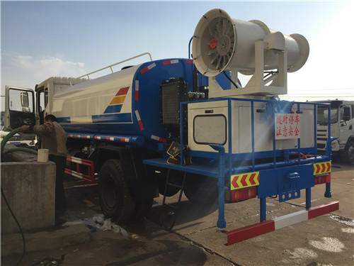 抑塵車風送系統啟動后,起動噴霧系統,先關閉噴霧截止閥,使藥液泵泵出的水匯流到藥箱工作5分鐘,使農藥和水充分混合。打開噴霧截止閥噴霧,調節液泵壓力調節裝置,使工作壓力在規定要求下。