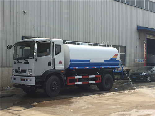 另外一種是不上牌的東風9噸環衛灑水車,底盤采用東風單排帶翻轉駕駛室,3950軸距,900尼龍胎,帶方向助力,斷氣剎,帶暖風不帶制冷。發動機可選:玉動140馬力(5檔帶副變速),也可選康明斯170馬力(6檔帶副變速)。