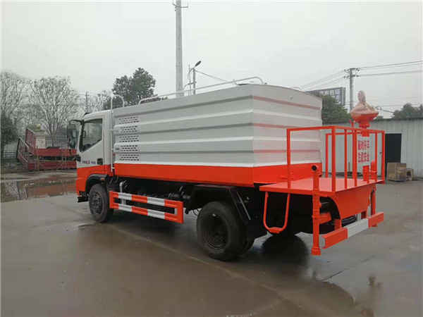 福田時代5噸抑塵車:福田時代底盤,軸距3360mm,安徽全柴490EGR發動機,7.00-16尼龍胎,帶暖風,氣剎(或油剎),不上牌抑塵車價格最低?!怪蔽?gt;7米,灑水寬度>14米,射程>28米。前沖(噴)):(能將路面泥巴、塵土、垃圾沖干凈);后灑(能均勻地將水灑在路面,灑水寬度>14米)、前側噴(花灑)(均勻地將路旁綠化帶澆灌)、后工作平臺,平臺上裝綠化灑水炮(炮有大雨、中雨、毛毛雨、霧狀可調節沖洗高大樹木),灑水泵,消防接頭,自流閥,過濾裝置、人性化爬梯及側防護欄,音樂喇叭。