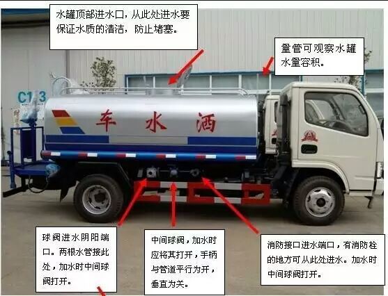 1灑水車在使用前,經常檢查水路系統的連接件,開關及吸水澆灌等部件部位的蜜蜂情況,如發現滲漏應立即恢復或更換密封件。