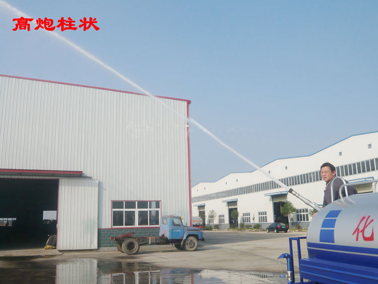 ◆ 灑水車綠化炮功能:綠化高炮位于灑水車的后工作平臺,可360度全方位旋轉(zhuǎn),并可調(diào)節(jié)多種直沖狀、大雨、小雨、毛毛雨、霧狀噴灑、噴射方式--(柱狀射程≥28m;霧狀射程≥15m)。綠化炮霧狀噴灑可用于園林綠化噴灑作業(yè);綠化高炮噴射一般用于沖洗澆灌樹木;綠化炮沖洗一般用于護欄沖洗、高空建筑物沖洗等.