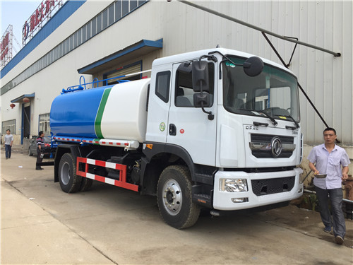 灑水車上裝配置:罐體有效容積約為15立方灑水車,隨州億豐泵,罐體鋼板為4MM碳鋼,罐體及整車外形尺寸按照公告。整車前沖、后灑、側噴、帶65消防接口,后平臺帶泡不帶門,前封頭帶水位計,后平臺主管路帶1寸澆花接口,后爬梯。平臺后部帶小安全告知牌:“隨時停車,注意安全”,帶兩根水管及陰陽端。罐體顏色:上白色下東風蘭,罐體兩側噴“灑水車”,貼反光標示。