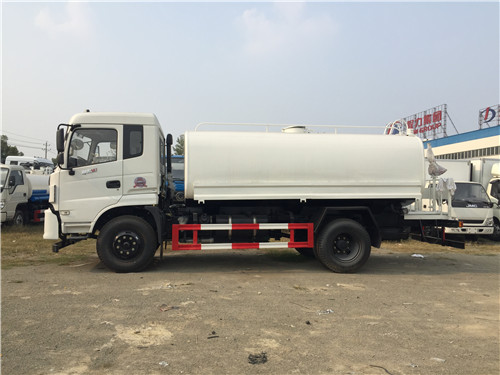 灑水車前裝有鴨嘴型噴霧或圓頭沖嘴,后面裝有圓柱形灑水砣,側噴花灑蓮花頭,車后部裝有高射噴槍。(選裝)