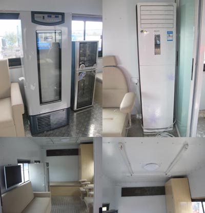 | 其它 | 1.車身可噴涂或粘貼宣傳文字,標識;車身兩側可增加或封閉部分窗戶。頂部封閉不可開啟。2.專用裝置:血液冰箱、LED屏、電視、電源系統、沙發、休息床,后部LED屏為選裝件。3.該車側防護和后防護為裙板式結構,側面以及后部裙板與防護相干涉,故防護可豁免。側面裙板離地高度為350mm。后裙板離地高度為440mm。4.ABS型號:3631010-C2000,4460046440;生產廠家:東科克諾爾商用車制動系統(十堰)有限公司,威伯科汽車控制系統(中國)有限公司。5.隨底盤選裝駕駛室。整車長/軸距(mm)的對應關系為:8430/4700,8230/4500,7930/4200,7530/3800。 | ||